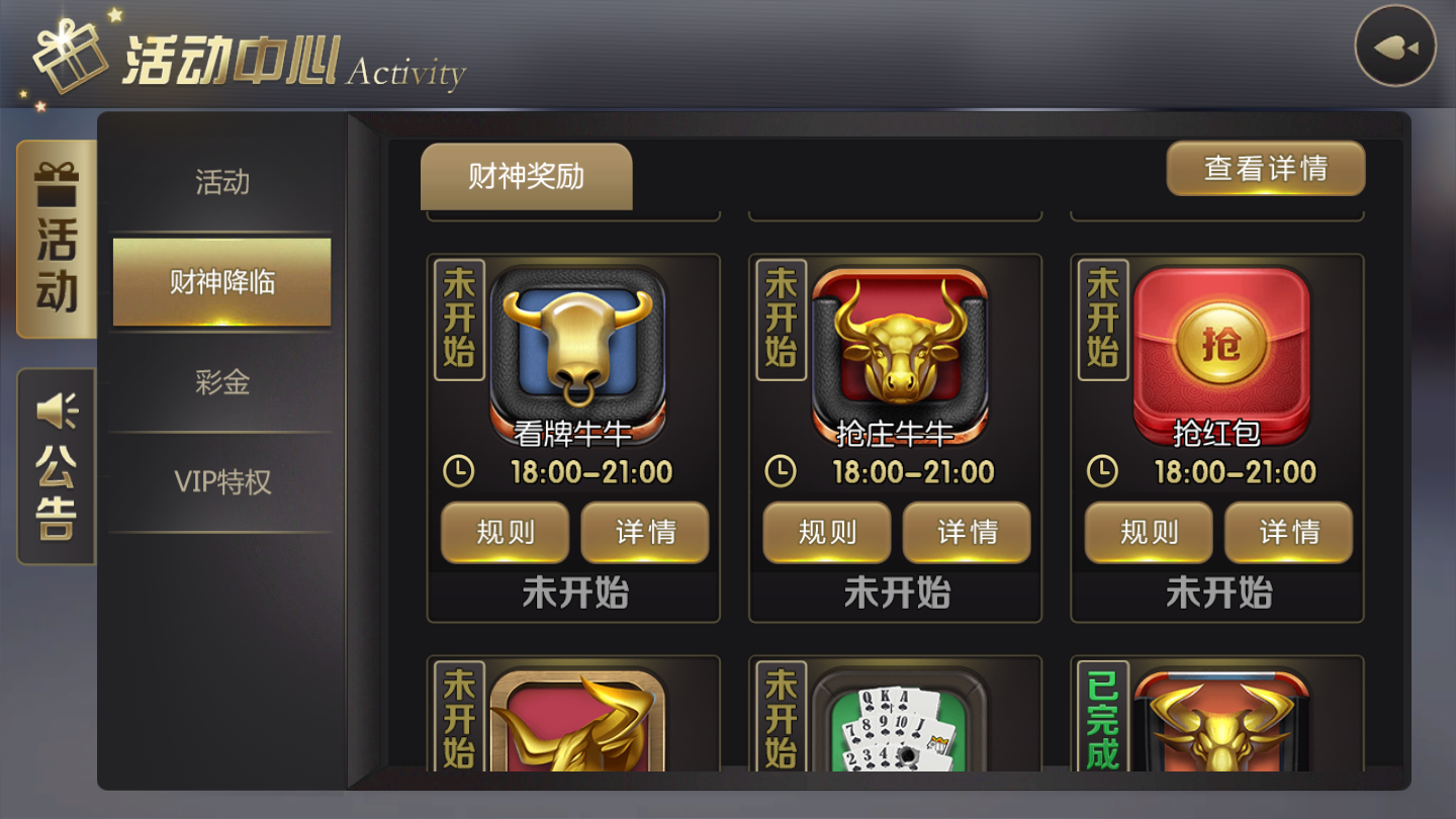 5、在比牌过程中玩家可以选择看牌、不看、跟注、加注等操作