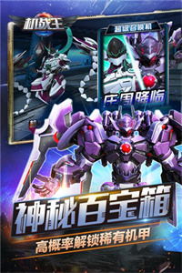 《机战王》集合果宝特攻、快乐酷宝、钢铁飞龙、超兽武装、武战道等五大动画角色和剧情,300款独特机甲设定!你熟悉的机甲将在《机战王》中一一登场,快来和他们并肩作战吧!