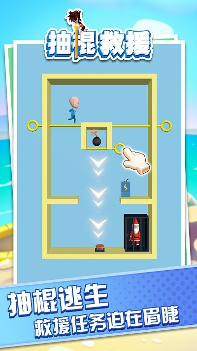 抽棍救援这款属于休闲益智类手机游戏,游戏简单易操作,游戏玩家可以简单入门,游戏玩法也是十分的有趣,丰富多彩的游戏感受,也有许多的趣味性的动画场景等候着用户的挑战。当前的版本是v1.0.1,根据用户的反馈,优化了游戏的一些画面和相关操作,有兴趣的小伙伴们一定不能错过了哦,赶紧来下载游戏一起畅玩吧!