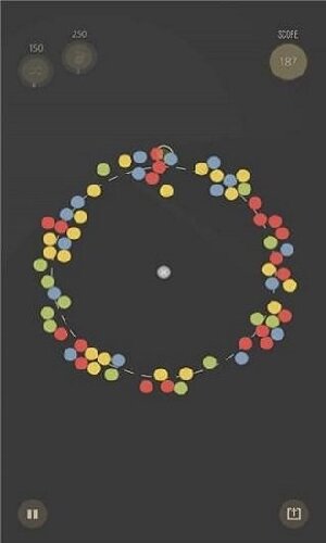 1、通过左右滑动屏幕控制圆球运动方向,引导彩色圆圈向中心点聚集,注意力度和角度的精准把控。