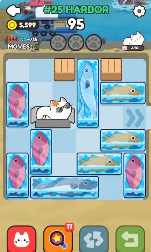 1、角色收集系统:解锁20+只特色猫咪,每只都有独特的推箱技能和皮肤造型。稀有猫咪拥有特殊通关加成。